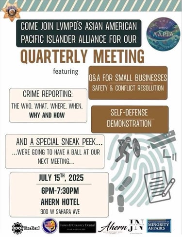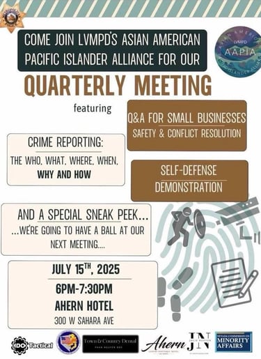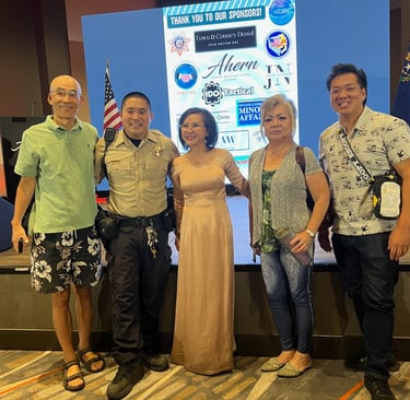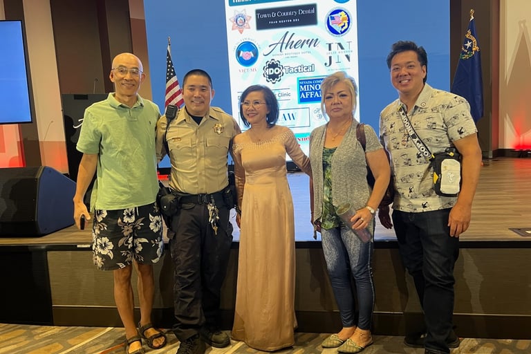 Vice president Wayne Young (right), secretory Tina Kruger (2nd right), Kim Le (middle) and William Lu (left) at the join event with LVMPD.